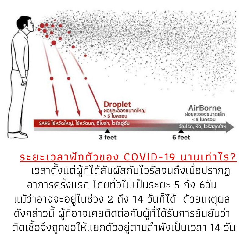 ไวรัสแพร่ขยายด้อย่างไร ? การแพร่เชื้อ COVID-19 ยังคงมาจากละอองฝอย ละอองเสมหะ หรือดร็อปเล็ท (droplets) เป็นหลัก ซึ่งผู้ที่รับเชื้อต้องอยู่ใกล้ชิดกับผู้ป่วย ในระยะประมาณ 1-3 เมตร และต้องสัมผัสกับสารคัดหลั่ง เช่น น้ำมูก น้ำลาย เสมหะ ที่มาจากการไอ จาม เช่นเดียวกับโรคซาร์ส ไข้หวัดใหญ่ ไข้หวัดนก และอีโบลา